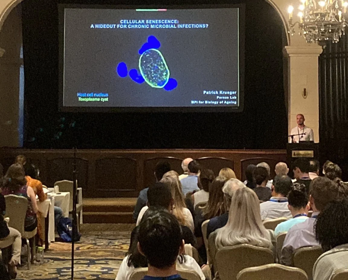 The biennial meeting on Toxoplasma Biology and Toxoplasmosis is the most important event for researchers in this field. Its XVI version was held in Riverside, California from May 22-26 2022. During this meeting representatives from almost all laboratories working on this parasite were present and thanks to his fascinating project “Cellular Senescence: A Hideout for Chronic Microbial Infections?”, Patrick was selected to give a turbo talk for the audience. Congrats Patrick!